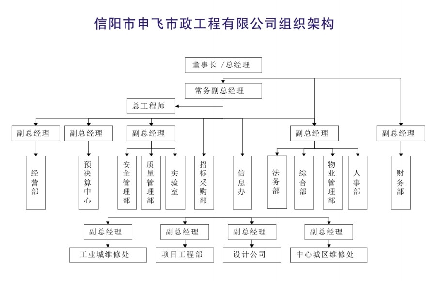 我公司专业人才荟萃,技术装备雄厚。目前公司有在职职工350人。具有高、中、初级专业技术人员120余人。其中:高级工程师5人,工程师38人,助理工程师75人;一级建造师15名,二级建造师45名。拥有装载机、挖掘机、沥青摊铺机、压路机、工程运输车辆及其它特种车辆等各种专业施工设备,具有综合加工商品砼搅拌站与沥青拌合站各一处,机械化施工装备在信阳市政、建筑行业首屈一指。公司有两个预制加工厂,可提供路沿石、人行道板、树围条、雨水井、检查井、排水管等各种水泥制品,满足不同客户的需求。
