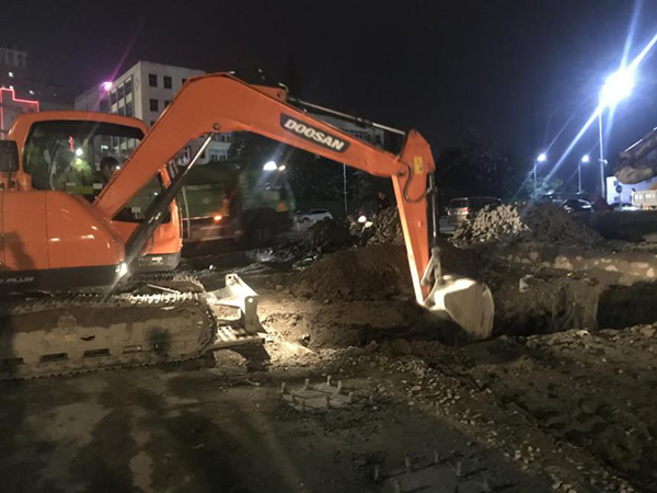 为早日还路于民,市政公司增加人力物力投入,项目处严密组织,倒排工期,实行三班倒,昼夜奋战,全力以赴推进施工进度,确保通车目标实现。