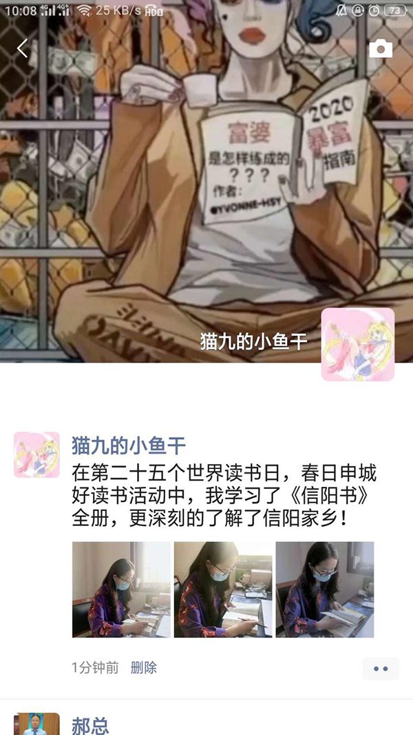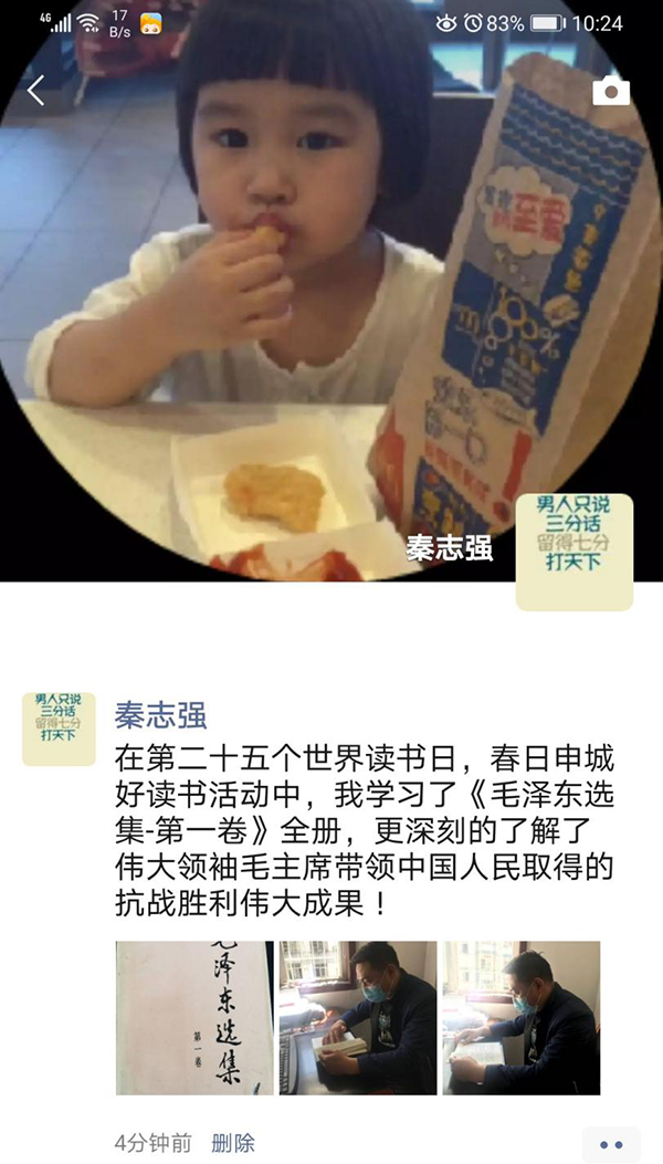 2020年4月23日是第25个世界读书日,为号召网络文明传播,公司职工纷纷积极读书,发布到微信朋友圈。