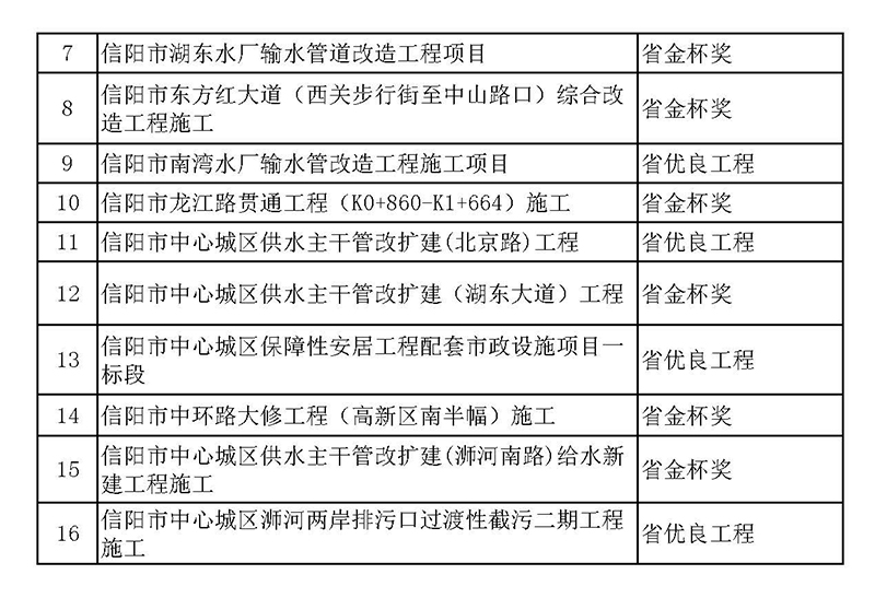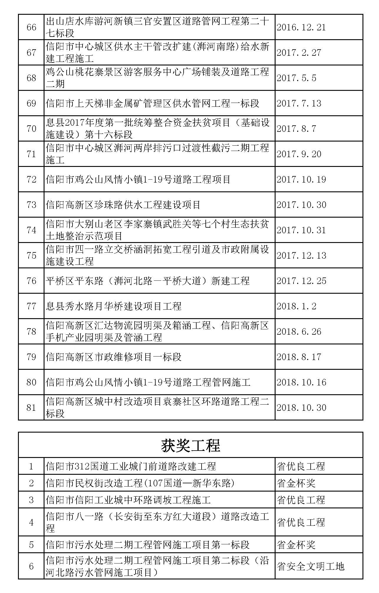 历年工程及今年获奖项目一览表